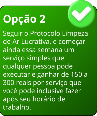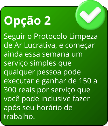 Comece hoje mesmo a aplicar o Protocolo Limpeza de Ar Lucrativo e comece a gerar mais de MIL REAIS por semana com um passo a passo simples.